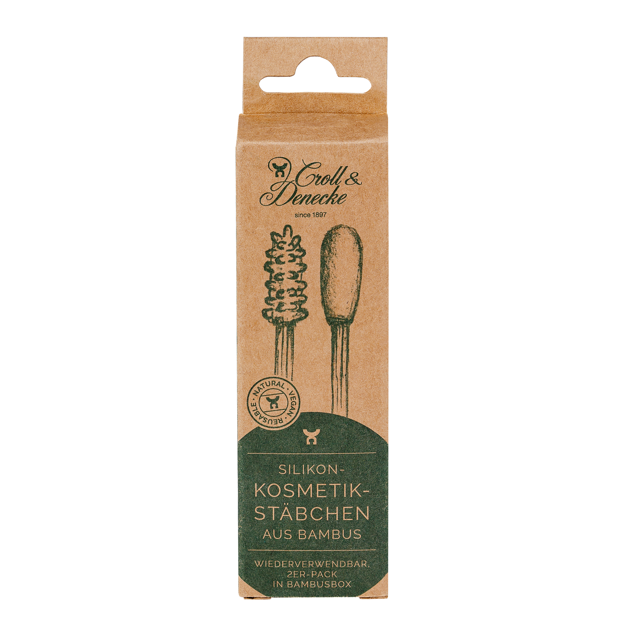 Silikon-Kosmetikstäbchen aus Bambus wiederverwendbar, 2er Pack in Bambusbox